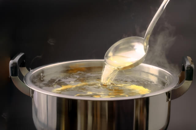 Soup stocks in Kansai are seasoned with light soy sauce and based on kelp and thinly shaved dried bonito flakes, giving them a clear and delicate flavor. They are characterized by their light golden color and subtle taste.