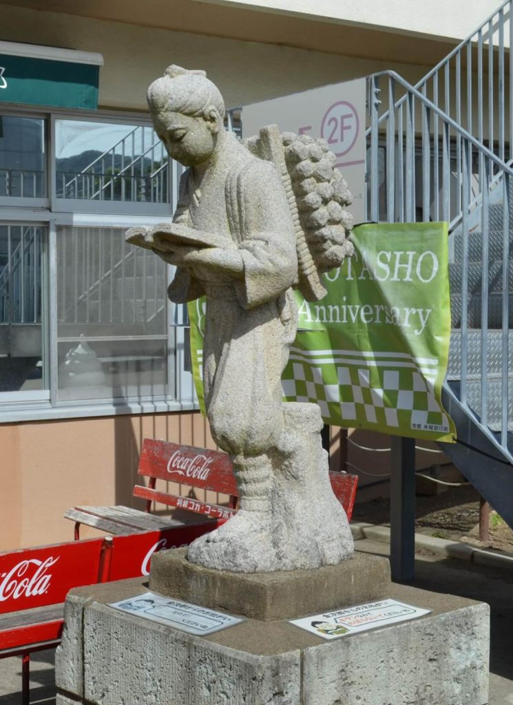 This statue is of a famous historical Japanese figure from the Edo era, Ninomiya Kinjiro (also known as Ninomiya Sontoku). He is known as a person who studied hard. Born into a farmer’s family, he experienced many hardships in his childhood, but he worked and studied diligently. Later, he became a great agricultural economist and politician. Therefore, many schools in Japan have installed his statue.