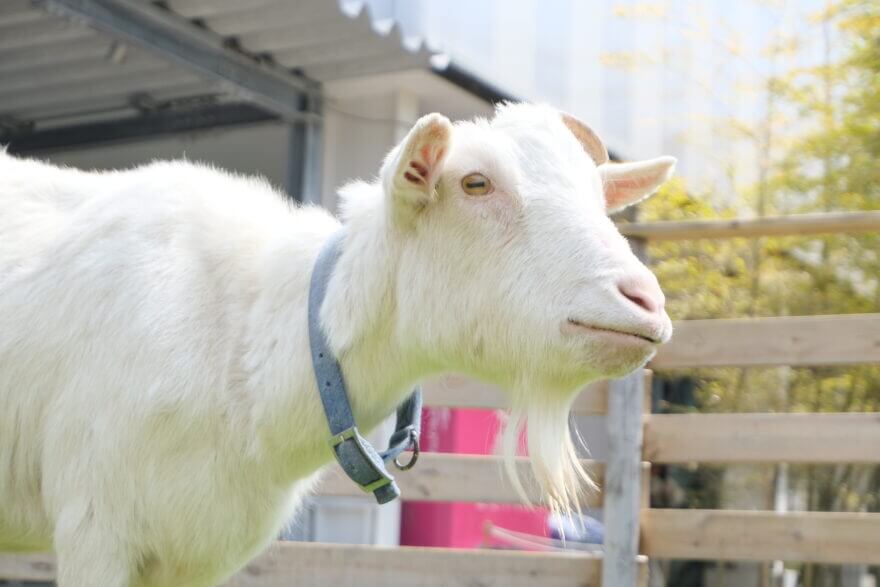 Many schools used to keep animals like goats or chickens. However, the number of such animals has been decreasing recently due to changes in teachers’ work styles. You can still see goats here on weekends.