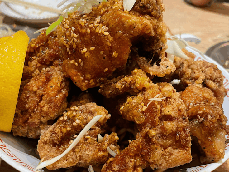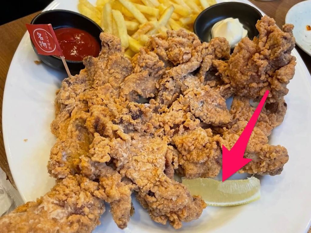Karaage comes with lemon on the side. It’s always a controversial topic whether to squeeze lemon at first or later, or not to do it. So, unfortunately, if you’re the first person to squeeze lemon in the situation, you should ask everyone, “ Do you mind if I squeeze lemon on karaage?” That would be very polite and you would definitely be respected by everyone.