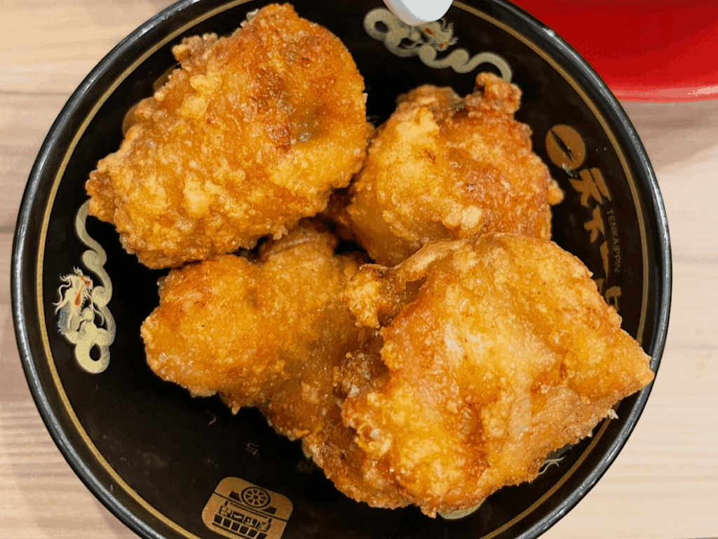When you want to change taste, mayonnaise and tartar sauce are good options. For me, nothing beats freshly cooked white rice. Savory karaage goes well with the slightly sweet rice. Moreover, ramen, karaage, and rice are the perfect combination for indulgence for myself. Oh, thinking about it makes my mouth .